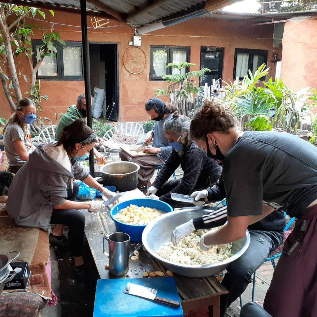 · Cocina y servicio de dos comidas saludables y completas al día (comida y cena) de “dal bhat” , el plato tradicional de Nepal.