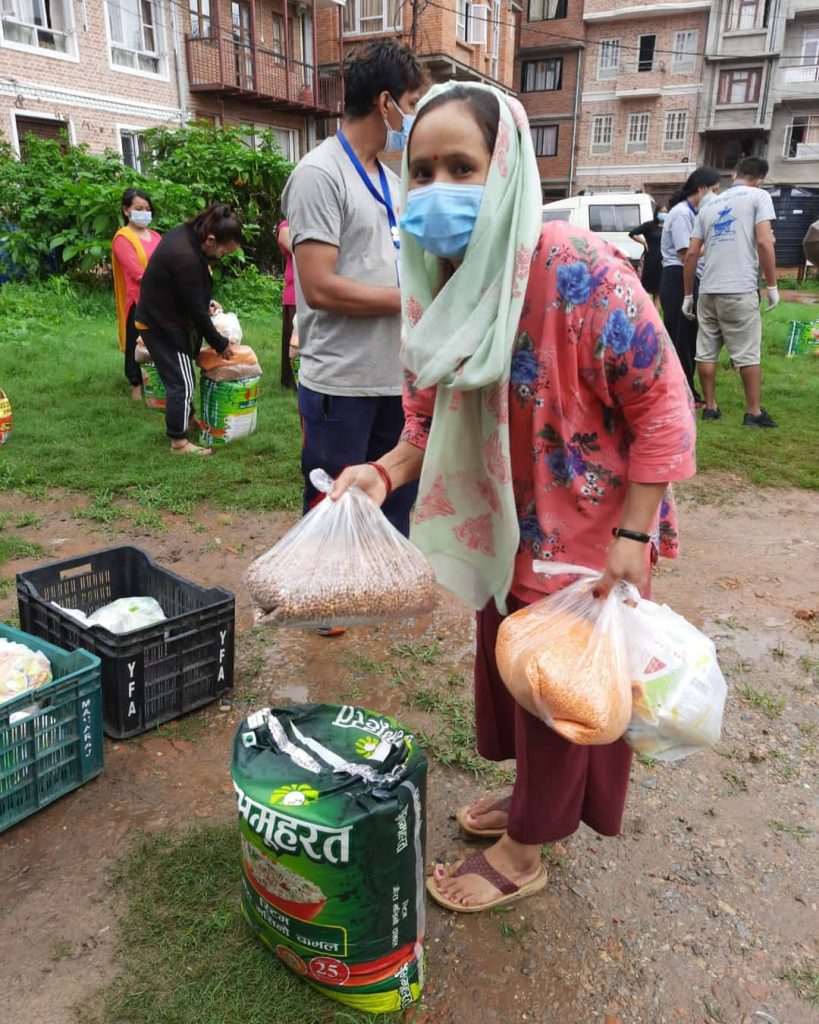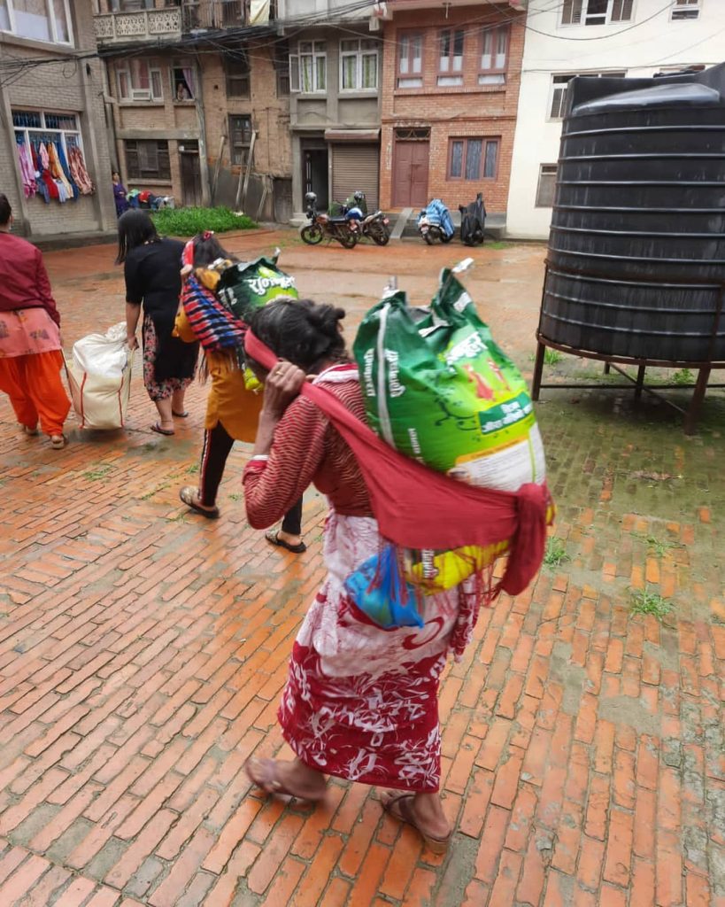 En una primera actuación distribuimos lotes de alimentos para un mes a 40 familias de una de las zonas más castigadas por la pobreza en Kathmandu. Koseli es un centro de día que se dedica a educar niños y adolescentes residentes en una zona de chabolas a orillas del río Bagmati. Se encuentran entre los colectivos de más riesgo puesto que son familias que viven en la extrema pobreza y el cierre de la economía les dejó sin nada. Se repartieron alimentos entre lo que se incluye lo básico para una alimentación adecuada. 25kg de arroz, 8 de lentejas, 5 de garbanzos, patatas, cebollas, aceite, sal, etc. En total una tonelada de arroz y otra tonelada de otros alimentos.