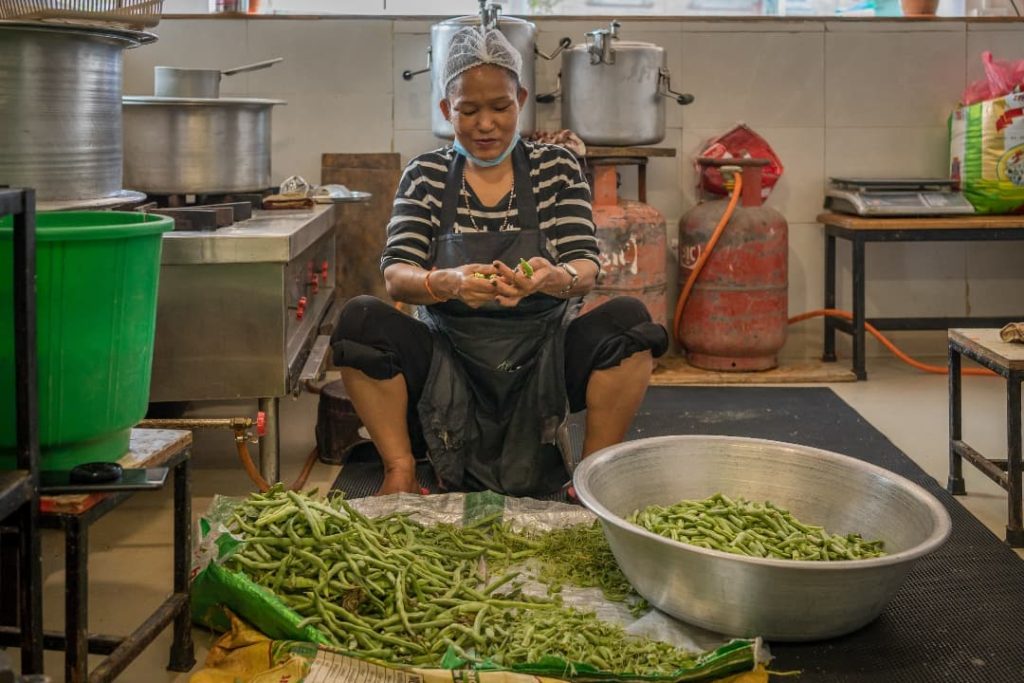 Inmediatamente después, inauguramos una cocina social donde cocinaríamos, empaquetaríamos y saldríamos a distribuir la comida en cuatro puntos de la ciudad. El espacio fue cedido por los dueños del Secret Garden Hostel, que ante la falta de turistas decidieron apoyar esta buena causa ofreciendo sus instalaciones. Contratamos cocineros y ayudantes, puesto que vemos imprescindible reactivar la economía local mediante la creación de empleo para que el dinero empiece de nuevo a circular.
